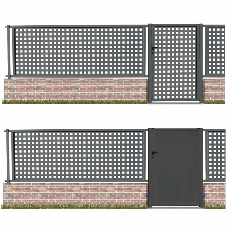 La composición se puede completar con la terminación de puertas en acabados de celosía como la Valla Prem o bien en chapa lisa para conseguir una total ocultación.